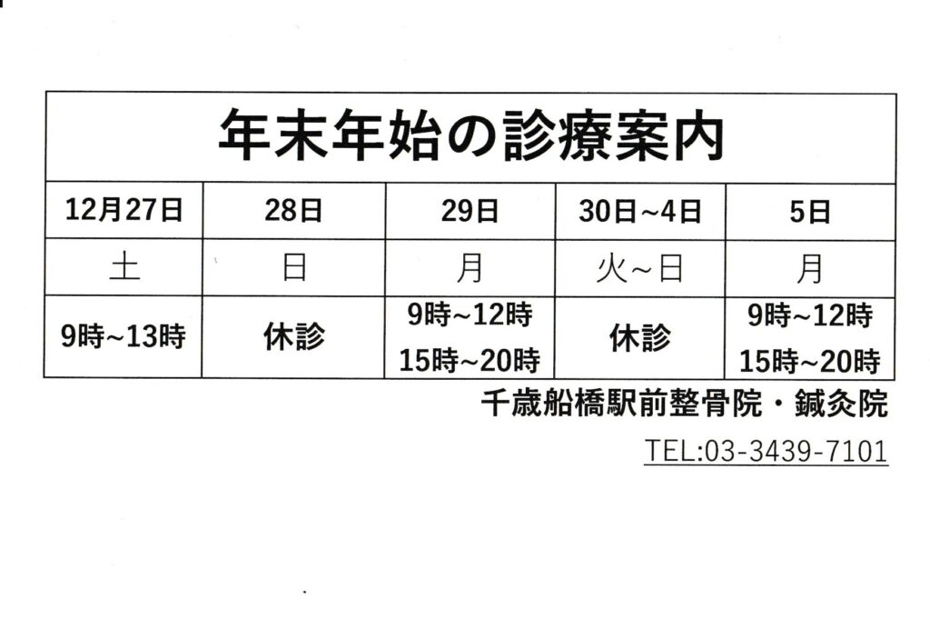 12月, 2025 | 千歳船橋駅前整骨院の記事一覧