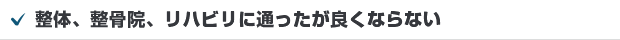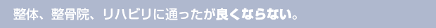 色々な施術をうけたが、その場だけ良くなっただけで、症状がすぐに戻る。
