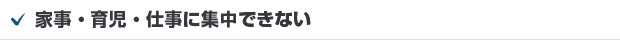 痛み、しびれなどが気になり、家事・育児・仕事が疎かになってしまう。