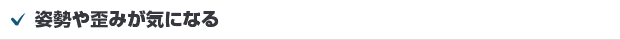 漠然と姿勢が悪い、歪みが気になる、友人や知人から姿勢や歩き方が悪いと言われた、など気になっていても何が悪いのか・どこがわるいのか・どうすればよいのか、患者様ご自身でもわからないことが多いと思います。